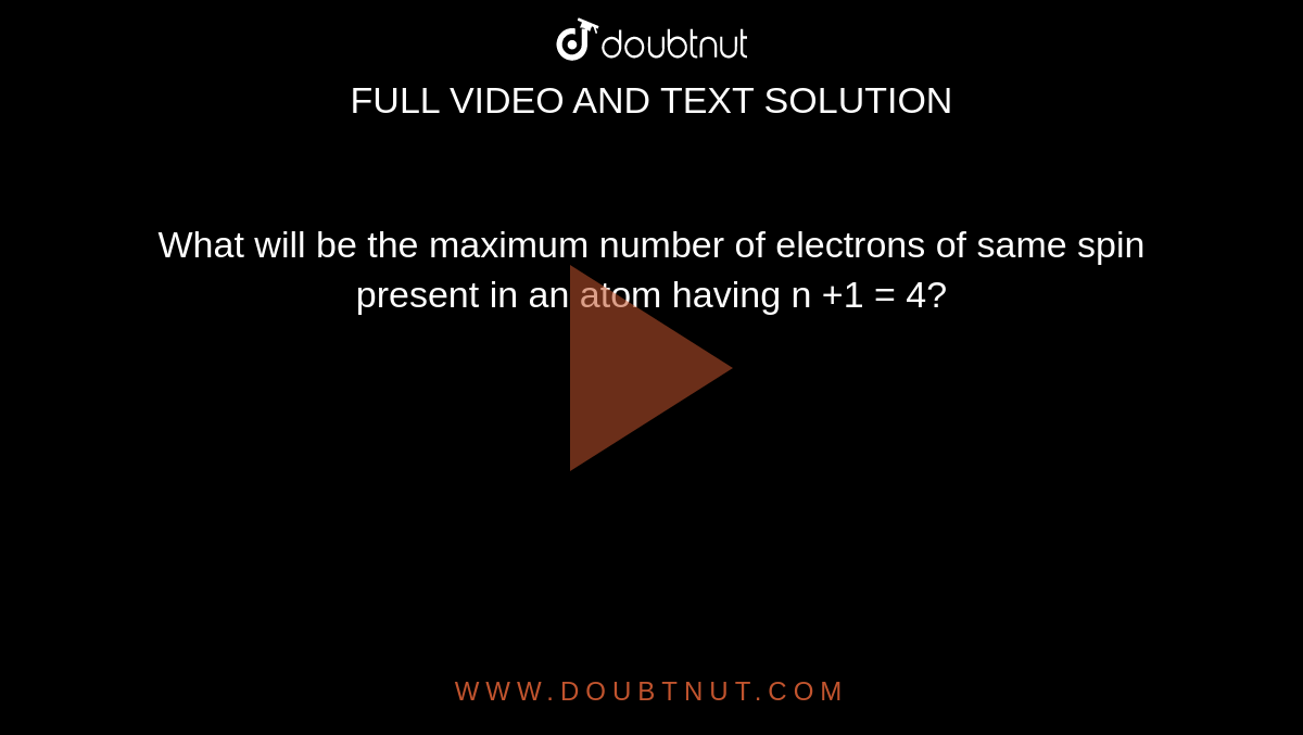 What Will Be The Maximum Number Of Electrons Having The Same Spin In An Atom With N L 4